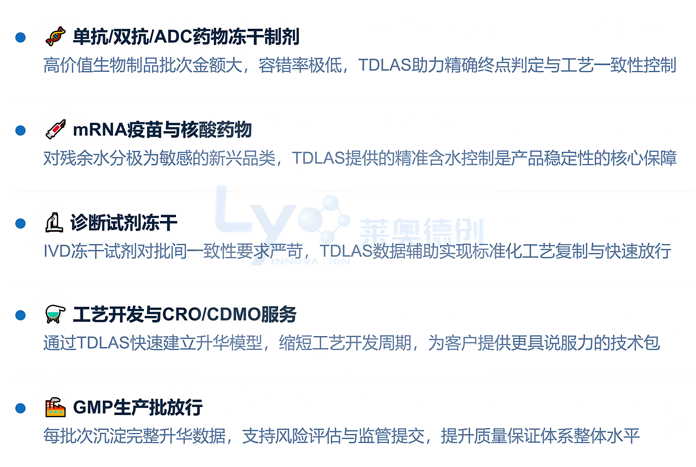 跨領(lǐng)域凍干應(yīng)用爆發(fā):細(xì)胞治療、核酸藥物、生物材料凍干的興起,帶來大量全新的工藝監(jiān)控需求,TDLAS的通用性使其適用于幾乎所有水分敏感產(chǎn)品。